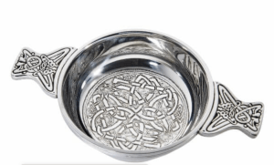 A Silver Bridal Cup, “Loving Cup,” is a unique tradition that allows two people to sip from it simultaneously.